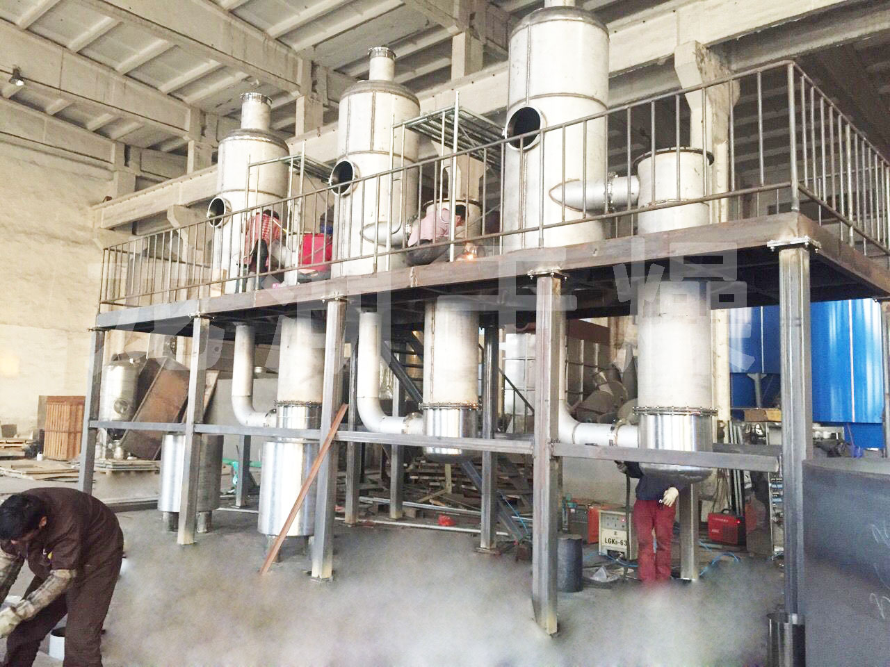 查看詳情單效或多效降膜蒸發器,適用于牛奶、葡萄糖、淀粉、木糖、制藥、化工、生物工程、環保工程、廢液回收等行業進行低溫連續式蒸發濃縮,具有傳熱效率高,物料受熱時間短等主要特點,所以特別適用于熱敏性、粘滯性、發泡性等物料。